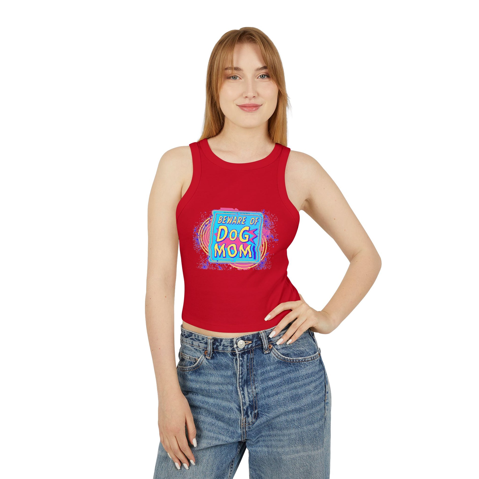 A modern and chic Beware of Dog Mom tank top, perfect for dog-loving women who want to showcase their love for their furry friends. With a high neck style, fitted design, and mid-length cut, this tank offers both style and comfort. Ideal for casual wear, workouts, or as a layering piece. Perfect for dog moms to wear on Mother's Day or any day to celebrate their love for their pets.