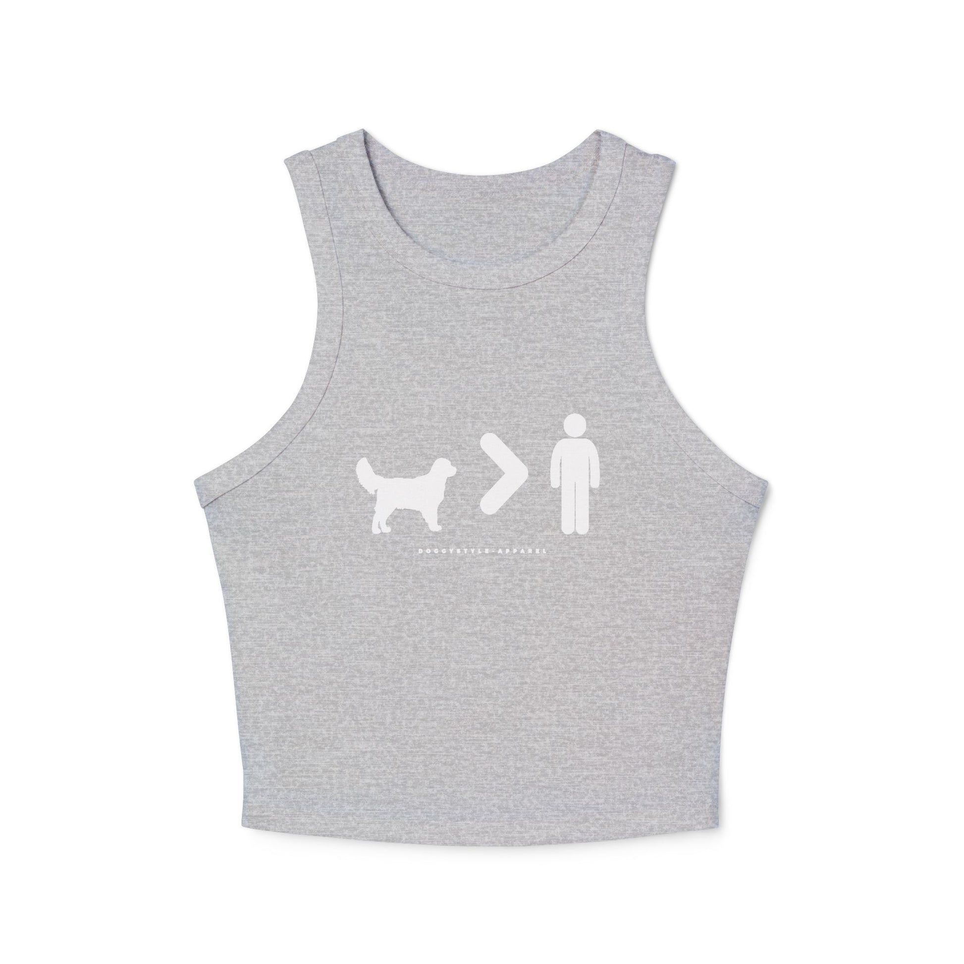 This Dogs > People Racer Tank Top exudes a fun and playful vibe, perfect for dog lovers who prioritize their furry friends. The high neck style and mid-length cut offer versatility for various activities, while the fitted design ensures both comfort and style. This tank top is ideal for layering or wearing on its own during casual outings or workouts.